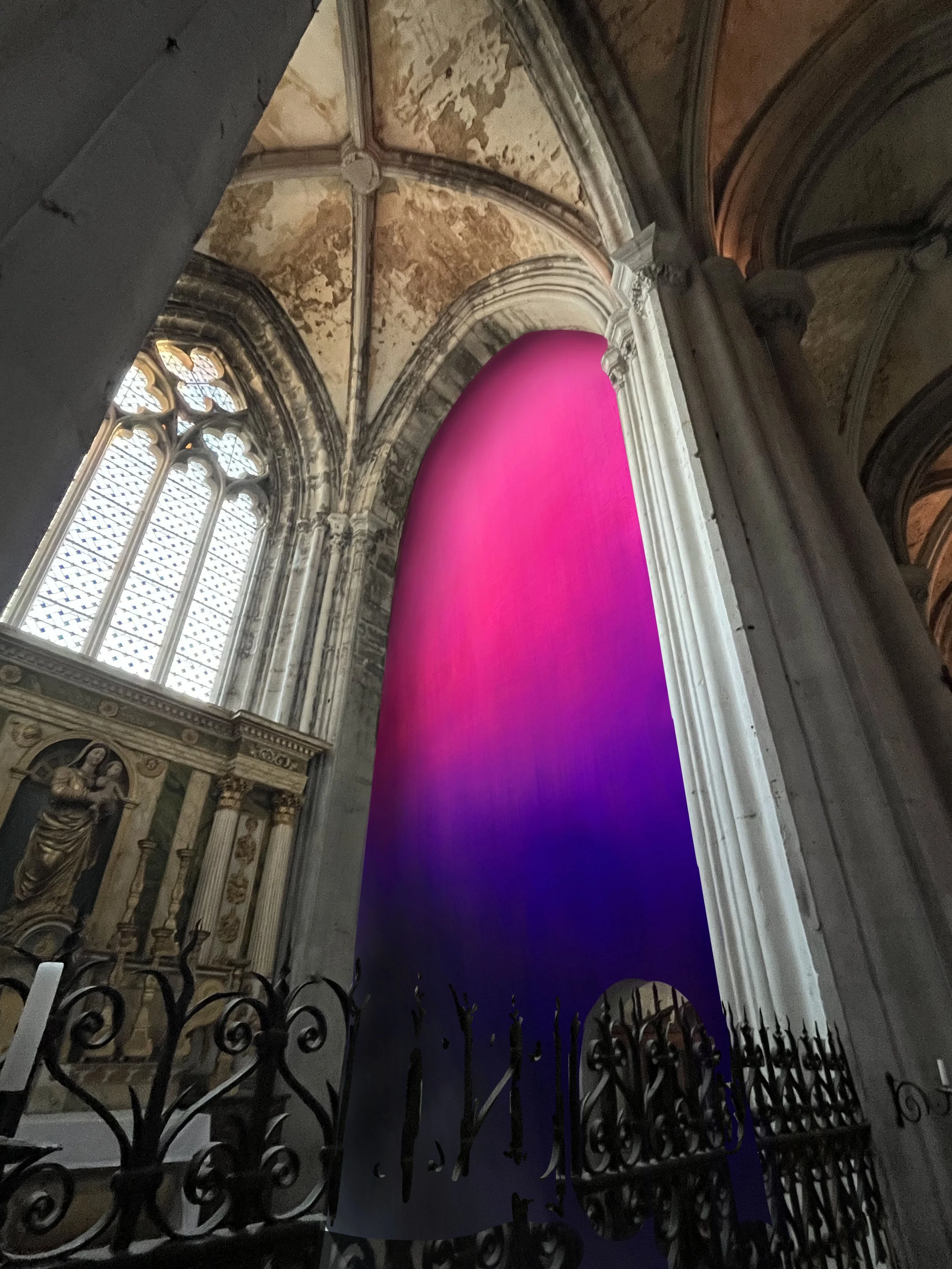 Insertion virtuelle de NOCTURNE 30.1.24 dans l’encadrement de la porte d’accès ouest de l’église St Eustache
